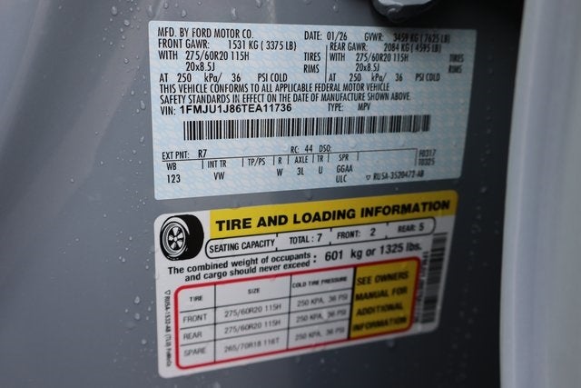 2026 Ford Expedition Active 4WD, 26mm Engine Radiator, 2nd Row Power-Folding Captain's Chairs, 3.73 Axle Ratio, 360-Degree Zone Lighting, 3rd Row Flexible Seating (40/20/40), 3rd Row Vinyl Seats, 4-Door Intelligent Access (Lock/Unlock), 4-Way Manual Head Restraints, Active Air Dam, ActiveX-Trimmed Front Heated Captain's Chairs, Apple CarPlay/Android Auto, Auto High-beam Headlights, Automatic temperature control, Dual Power-Folding Sideview Mirrors with Autofold, Equipment Group 202A Touring Package, Exterior Parking Camera Rear, Flex Powered Console, Ford Connectivity Package (1-Year Included), Ford Digital Experience, Ford Split Gate, Front dual zone A/C, Front Side Laminated Glass, Fully automatic headlights, Heated door mirrors, Heated Steering Wheel, Heavy-Duty Trailer Tow, Integrated Trailer Brake Control, Memory Driver Seat, Power door mirrors, Power driver seat, Power Panoramic Vista Roof with Power Sunshade, Power passenger seat, Power Tilt/Telescopic Steering Wheel with Memory, Pro Power Onboard - 400W, Radio: AM/FM Stereo with MP3 Capable, Rain Sensitive Windshield Wipers, Rear air conditioning, Remote keyless entry, USB Ports, Wheels: 20 x 8.5 Bright Machined Aluminum.