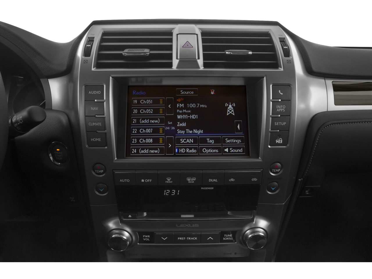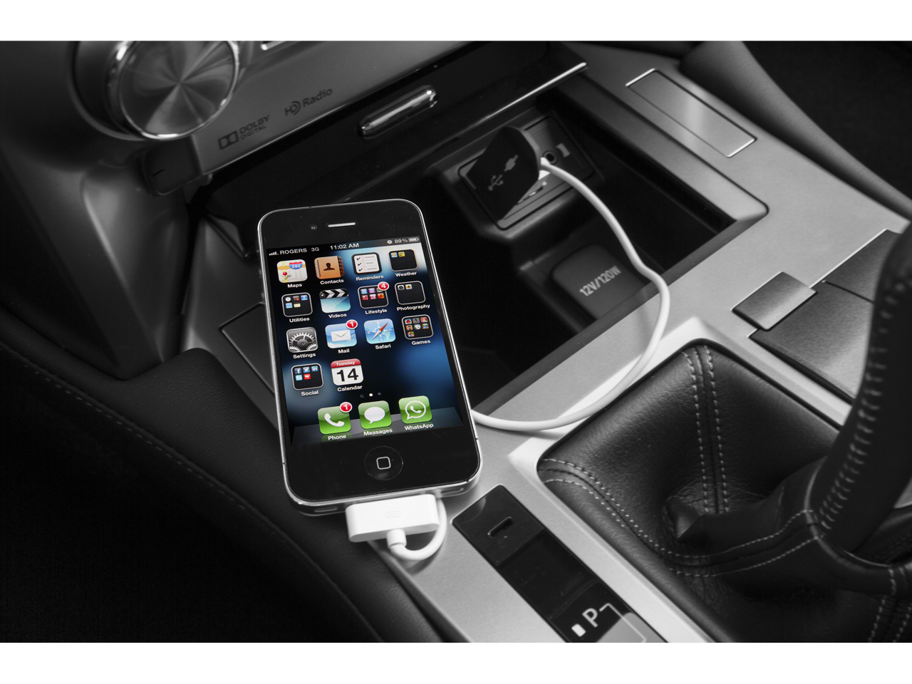 - Radio: AM/FM Lexus Premium Audio -inc: 8" touch screen, 9 speakers, in-dash single CD player w/Automatic Sound Levelizer (ASL), MP3/WMA capability, cache radio, integrated SiriusXM satellite radio receiver (complimentary 90-day trial subscription included), HD Radio real-time traffic and weather, 2 USB ports w/iPod connectivity, Bluetooth hands free phone w/phonebook download capabilites, music streaming and Siri Eyes Free mode w/select and play music from iTunes, call contacts, hear and compose text messages and emails, hear sports scores, stock information and weather, use maps and get directions (turn-by-turn navigation can be requested through Siri and Apple maps) map displayed on phone screen, perform POI searches, requested search information read back to driver over vehicle audio system, read notifications and read calendar information, add reminders, calendar appointments and notes